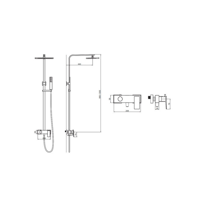 Форма верхнего душа Квадратная