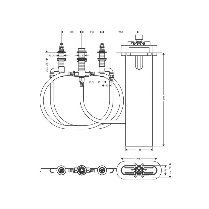 Ширина бортика ванны: мин. 100 мм