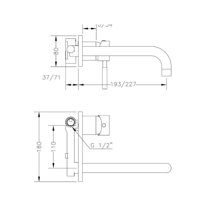 Смеситель для раковины GENEBRE Tau-22, встраеваемый, носик 22см (65132 18 45 66)