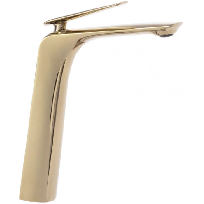 Представляем вам красивый, чрезвычайно функциональный и современный смеситель. Это продукт, который идеально заполнит пространство вашей ванной комнаты, сохранив при этом безупречный внешний вид и эстетику интерьера. Смеситель приспособлен для установки на столешницу рядом с умывальником. Он был изготовлен из латуни, покрытой тройным золотым покрытием. Благодаря специальной производственной фазе он долговечен и легко моется.