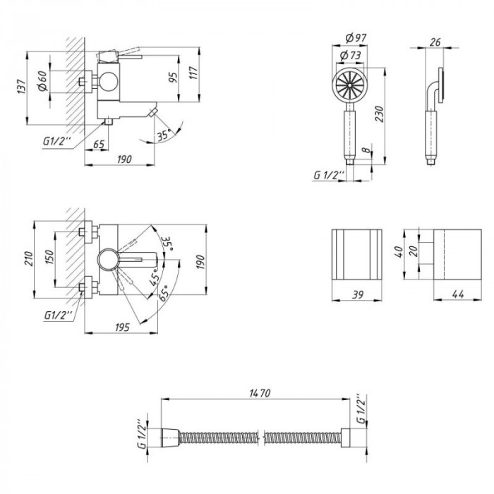 🛁 Комфорт Душа: В комплекте идет эргономичная ручная лейка (диаметр 97 мм) и душевой шланг (1470 мм) с функцией анти-скручивания. А кронштейн с двумя положениями позволит зафиксировать лейку именно так, как вам удобно. 🙌