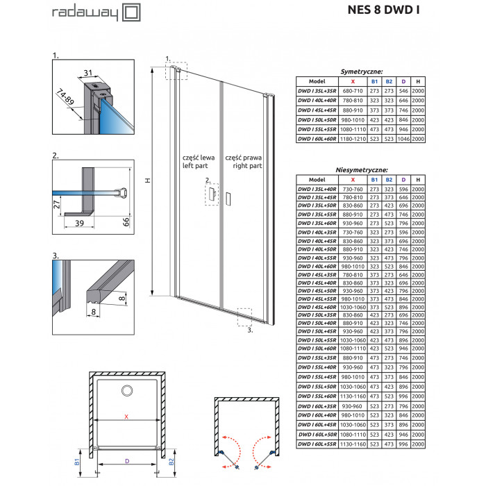 Коллекция Nes это одна из самых универсальных и многообразных коллекций душевых кабин, дверей и шторок. Створки двери в этой коллекции открываются и внутрь и наружу. Профили и фурнитура на выбор либо в цвете «хром», или «Black». Толщина стекла 6 или 8 мм. По стандарту стекло прозрачное или Frame/Factory. Под заказ есть доступны другие варианты цветов стекол.