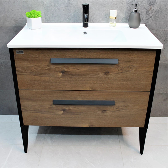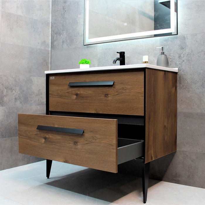 Тумба REXON Madera изготовлена из ламинированного влагостойкого МДФ с раковиной из керамики.