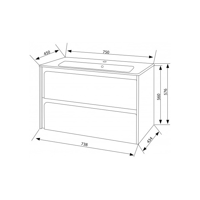 Розмір 75 см: Оптимальна ширина тумби для невеликих та середніх ванних кімнат, забезпечуючи достатньо місця для умивальника та зберігання.