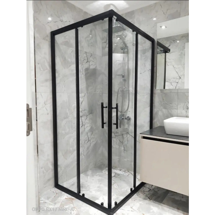 Елегантний чорний профіль: Чорний алюмінієвий профіль надає кабіні сучасного та мінімалістичного вигляду, створюючи виразний контраст із прозорим склом. Це ідеальний вибір для інтер'єрів у стилі лофт, модерн або для тих, хто шукає сміливий акцент.