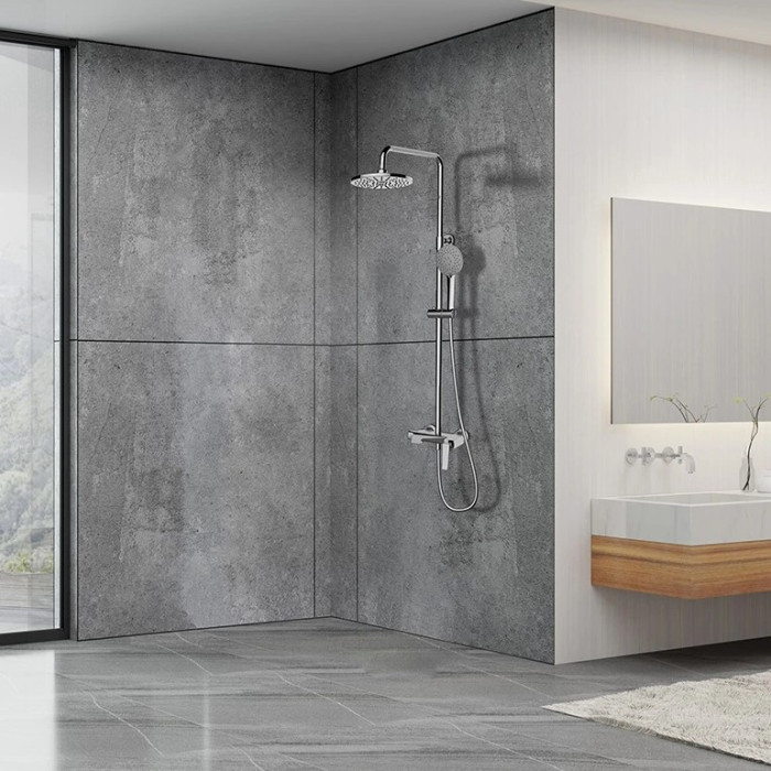 У системи круглий верхній душ, що регулюється по нахилу, з функцією тропічний дощ. Діаметр 22 см.