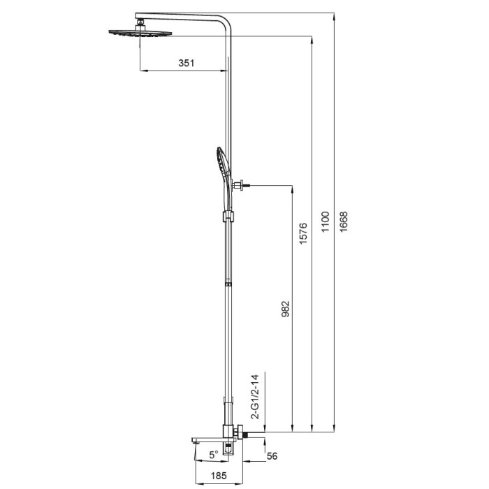 📏 Регульована Висота: Максимальна висота до 1668 мм та мінімальна 1100 мм дозволяють налаштувати колону під будь-який зріст, а розміри стельової лійки 30х30 см створюють відчуття справжнього СПА.
