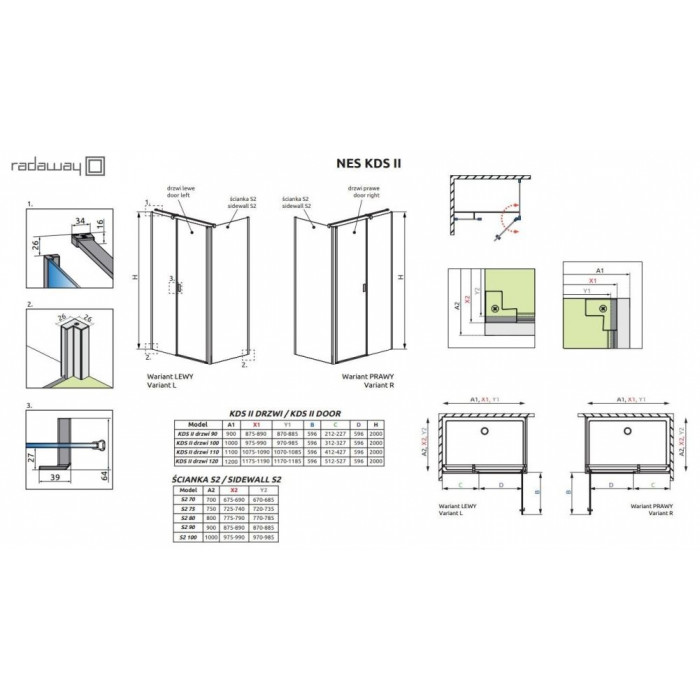 Колекція Nes це одна з найуніверсальніших і різноманітних колекцій душових кабін, дверей та шторок. Стулки дверей у цій колекції відкриваються і всередину, і назовні. Профілі та фурнітура на вибір або в кольорі "хром", або "Black". Товщина скла 6-8 мм. За стандартом скло прозоре або Frame/Factory. На замовлення є інші варіанти кольорів скла.