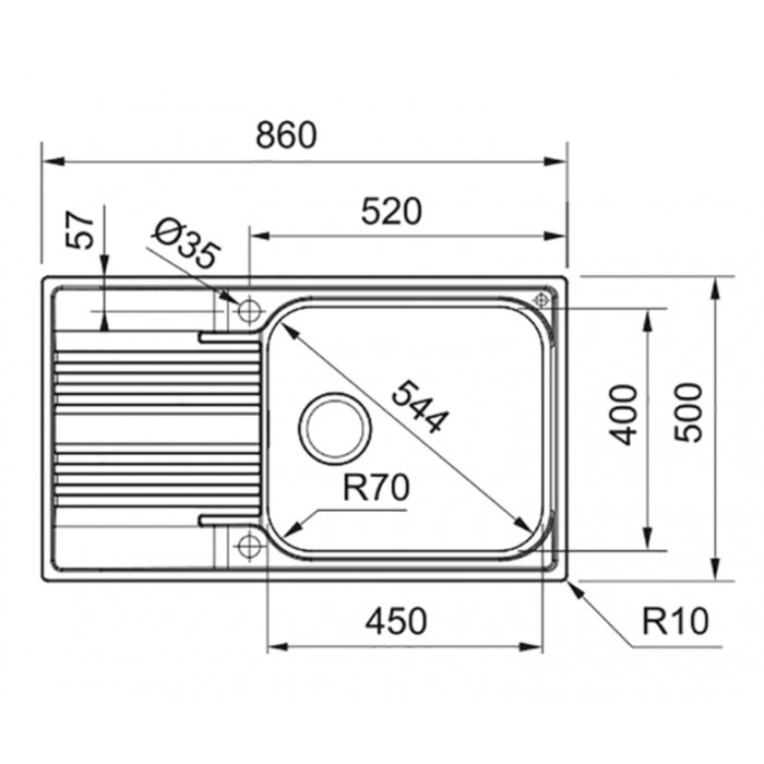 Глибина основної чаші 180 мм