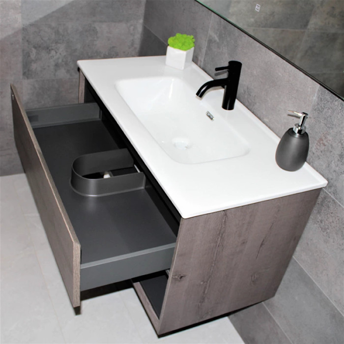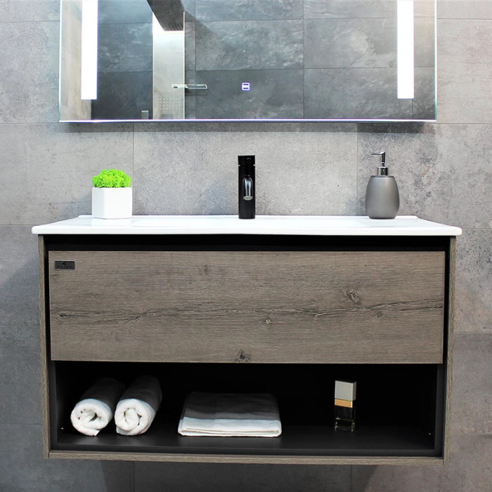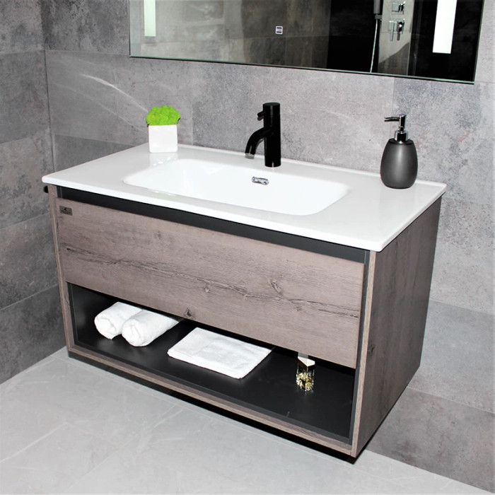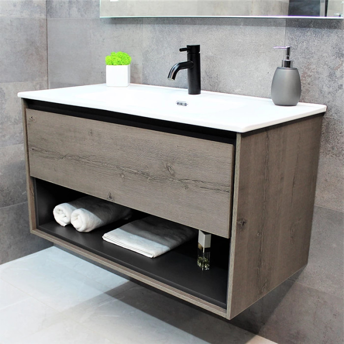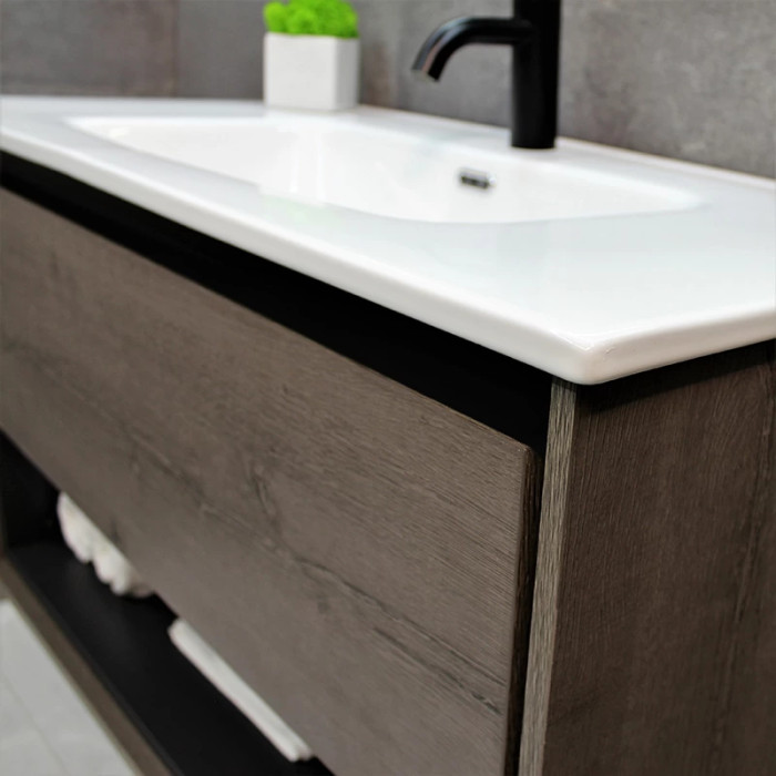 Тумба REXON Roble виготовлена з ламінованого вологостійкого МДФ з раковиною з кераміки.