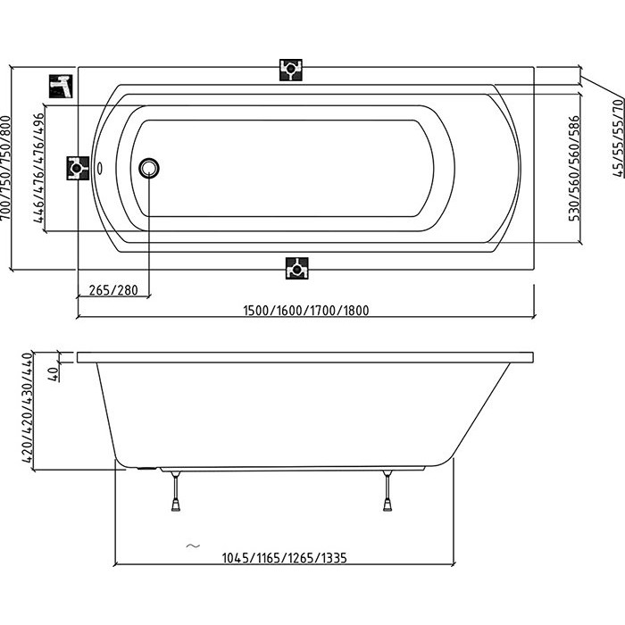 Ширина ванни 80 см