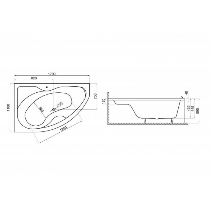Набор конструкционных особенностей представленной модели включает размеры изделия 170х110х60 см, угловой форм-фактор ванны, а также внутренний объем в 230 л.