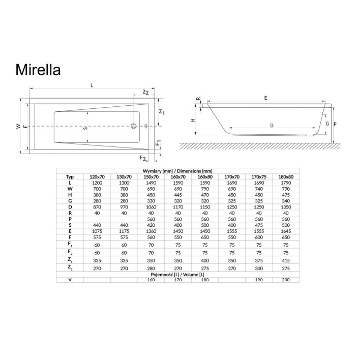 Прямоугольная форма и пристенный тип монтажа делают модель MIRELLA легко интегрируемой в любой интерьер.