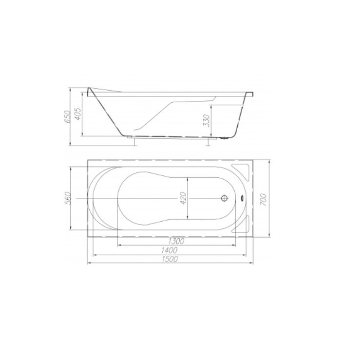 Длина ванны 150 см