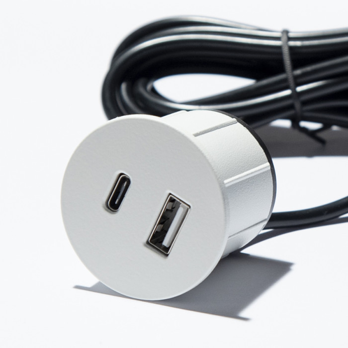 Порт USB зарядки, що вбудовується в меблі. Завдяки тому, що він може бути вбудований як у горизонтальну, так і вертикальну площину, даний продукт є максимально функціональним при обладнанні ним будь-яких як офісних, так і домашніх меблів.