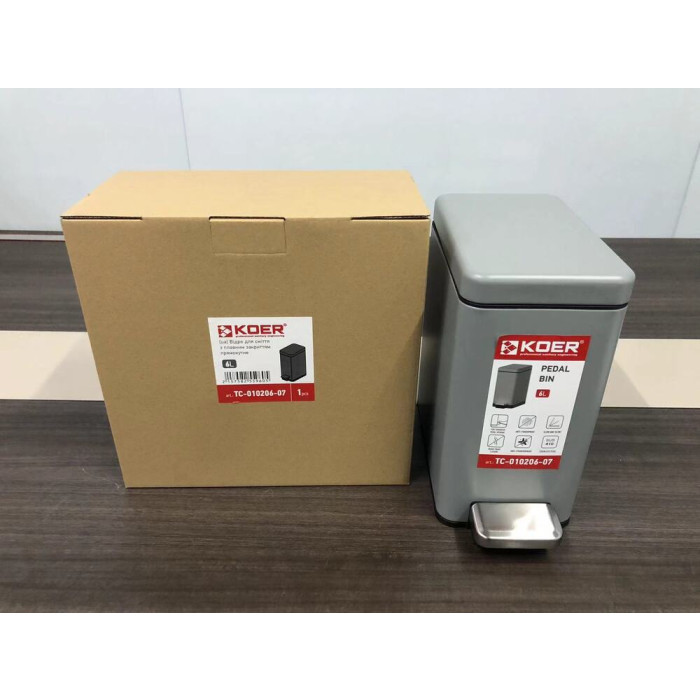 🗑️ Стильное и функциональное: Ведро для мусора Koer TC-010206-07 6 л – Ваш идеальный помощник в поддержании чистоты!
