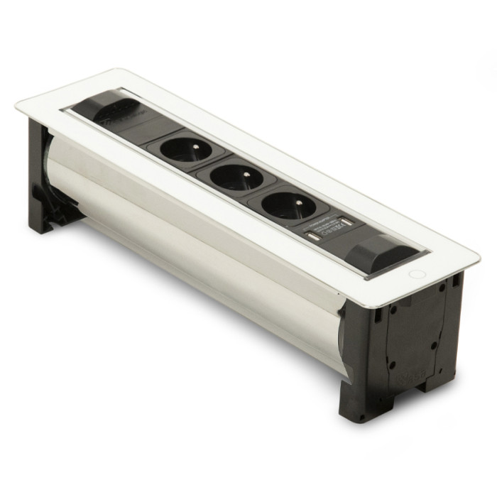 Электрический поворотный блок ASA Versaturn 3.0 — идеальное решение для современных переговорных, конференц-залов, кабинетов руководителей и элитных кухонных гарнитуров. Оснащён сенсорной кнопкой, автоматически поворачивается для мгновенного доступа к розеткам и USB-портам. Благодаря стильному дизайну с белым стеклом и анодированным алюминием, блок идеально впишется в любой интерьер премиум-сегмента.