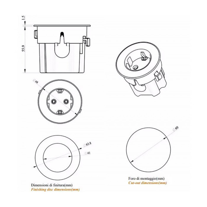 Диаметр монтажного отверстия: 60 мм