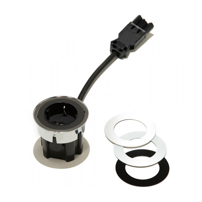 Встраиваемый модуль с необходимостью минимального выреза для встройки в 60 мм, имеющий в комплектации стандартное силовое гнездо 220V.