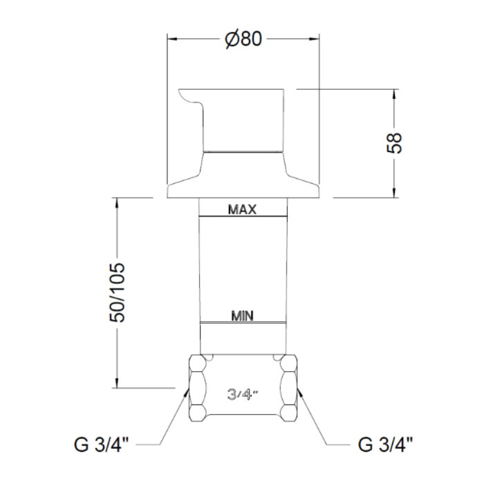 Изготовлен из латуни в соответствии с UNE-EN1982 Ручка Zamak Стандартное соединение G ¾” Хромированный согласно EN 248 Керамический картридж на ¼ оборота Регулируется по глубине Максимальная температура: 85 °C Макс. Рекомендуемая температура: 65 °C Максимальное давление: 10 бар Минимальное давление: 0,5 бар Рекомендуемое давление: 1 – 3 бар Страна производитель: Испания Страна регистрация бренда Испания