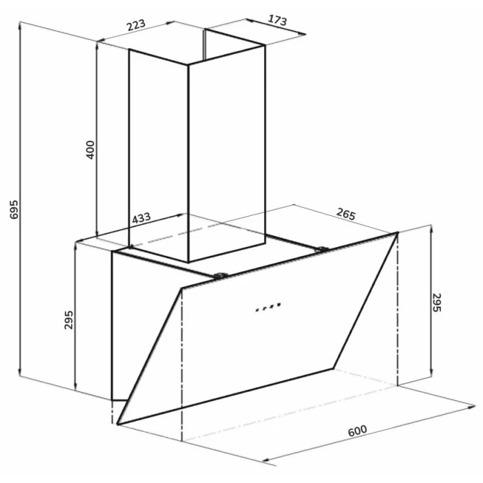 💡 Важно при планировании: Данная модель работает исключительно в режиме отвода воздуха в вентиляционную шахту. Возможность установки угольных фильтров для рециркуляции не предусмотрена конструкцией. Для обеспечения максимальной тяги рекомендуется использовать воздуховод диаметром 120 мм. Черное закаленное стекло очень практично, но для поддержания зеркального блеска используйте мягкие средства для очистки стекол без абразивных частиц!