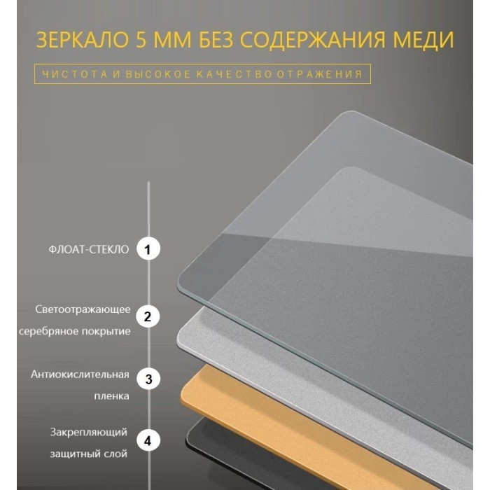 Высококачественное экологическое зеркало DUSEL производится без использования меди и свинца, что обеспечивает высокую устойчивость к коррозии и соответствие высоким экологическим стандартам.