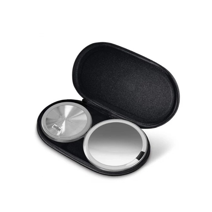 Зеркало легко складывается и удобно хранится в дорожном футляре. Зарядка осуществляется через стандартный USB-порт, одного заряда хватает до 5 недель. 10-кратное увеличение идеально подходит для работы крупным планом, например, для ухода за бровями или нанесения макияжа.