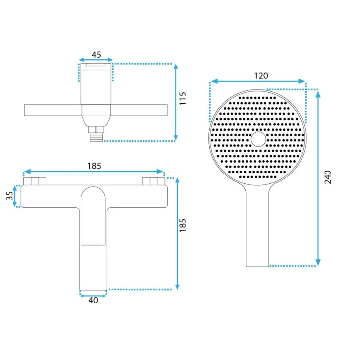 🚿 Смеситель для ванны и душа REA AVALON TYTAN графит настенный с изливом 🚿