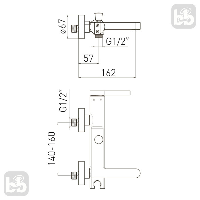 Настінний монтаж: Змішувач встановлюється на стіну, що дозволяє заощадити місце у ванній кімнаті та створити більш просторий простір.